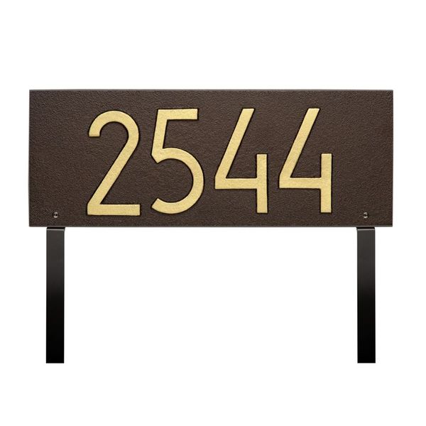 The Whitehall Products Midcentury Modern Rectangle Horizontal Address Plaque will add the finishing touch to your home and instantly improve curb appeal. This address plaque is made from rust-free cast aluminum providing excellent quality and durability. Available in a variety of finish colors to accommodate your outdoor color scheme. Home address plaques also make great gifts for any special occasion. Every Whitehall plaque is proudly hand crafted in the USA from recycled aluminum.