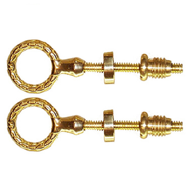 Traditional mirror hardware for mounting Cheval style mirrors to their frame while allowing the mobility to adjust the angle of the  mirror as needed. This style mirror first came to use in 1700s France, and were popular in dressing rooms for their ability to tilt and give a full view of the wearer's outfit. These mounts come with 2 different length studs at 2-1/4" and 3-1/2" to accommodate frame thicknessÂ