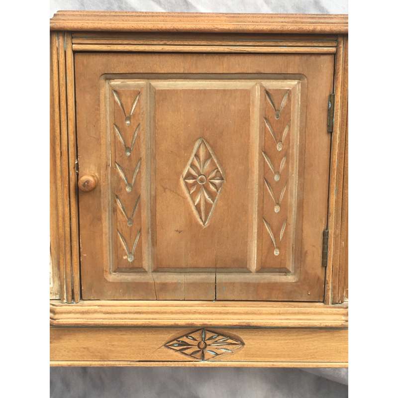 Good condition: showing minor signs of wear to finish but no excessive damage to the structure. There are a few cracks in the wood as shown in the photos but the piece is solid and has been recently repaired, there is a new backing and it has been strippe